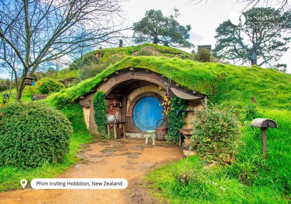 Phim trường Hobbiton: Ngôi làng cổ tích Hobbit là nơi đoàn làm phim “Chúa tể của những chiếc nhẫn” và “The Hobbit” sử dụng làm bối cảnh khi quay phim. Đây là một trong những điểm du lịch hấp dẫn nhất New Zealand. Tới đây, du khách như lạc trong thế giới thần tiên của những người lùn với những ngôi nhà được xây nửa nổi nửa chìm trong lòng đất. Cả ngôi làng đẹp như tranh với những đồi cỏ mênh mông xanh mướt, những vật phẩm sống động mô tả cuộc sống hàng ngày của những người lùn trong phim.