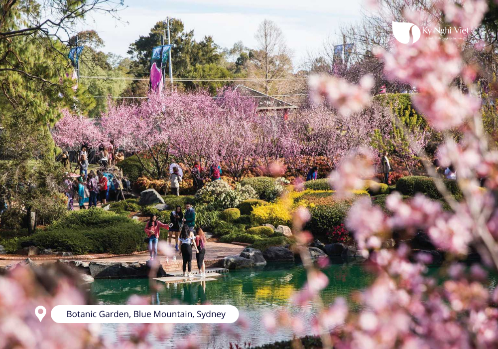 Trên đường đi, đoàn ghé thăm quan, chụp hình tại vườn hoa anh đào - Blue Moutain Botanic Garden.