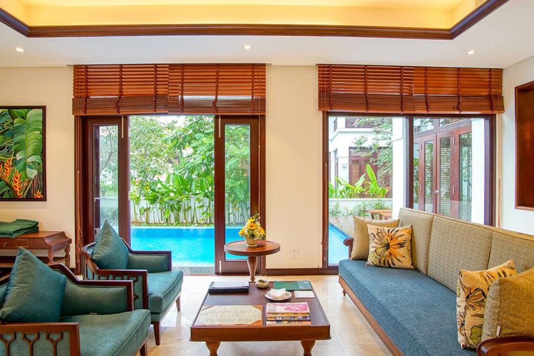 Khu nghỉ dưỡng có 196 phòng được thiết kế theo phong cách truyền thống Việt Nam kết hợp với phong cách Pháp, 2 tòa nhà 4 tầng có hướng nhìn ra biển, nhìn ra hồ bơi trong xanh và những khu vườn nhiệt đới xanh tươi mát. Ngoài ra, khu nghỉ dưỡng Furama còn cung cấp các liệu pháp spa, phòng xông hơi ướt, phòng xông hơi khô, dịch vụ mát-xa cạnh hồ bơi, các dịch vụ thể thao dưới nước và các lớp tập yoga và Thái Cực Quyền trên bãi biển.